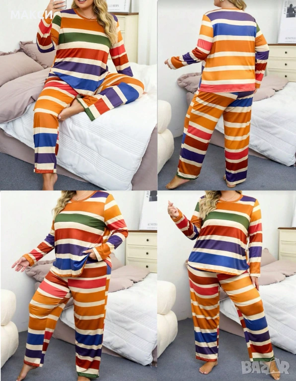 Макси силно еластичен и мек домашен комплект/пижама/ блуза с дълъг ръкав + долнище с ластична висока талия и широки крачоли в широко многоцветно пастено райе*