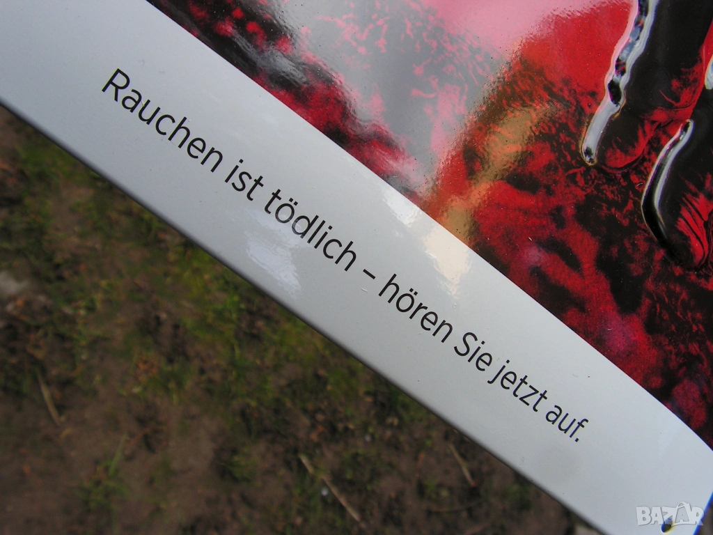 Пушенето е смъртоносно. Спрете сега..., допълнително гарантира оригиналния произход на плакета.