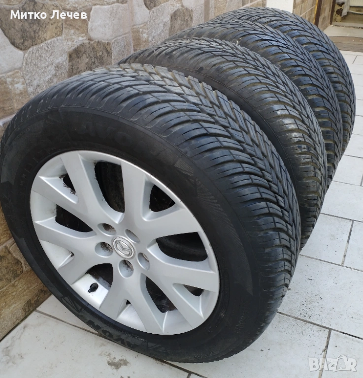 Оригинални Алуминиеви джанти 5/114,3 с Всесезонни гуми карани само 170 км с 7 мм грайфер без заварки и скрити дефекти балансирани готови за каране!Пасват идеално за Хонда ЦРВ, Мазда Нисан,Хюндай,Киа Цена 530евро! Изпращам с Еконт срещу капаро или на място в Девня.тел 0894398005