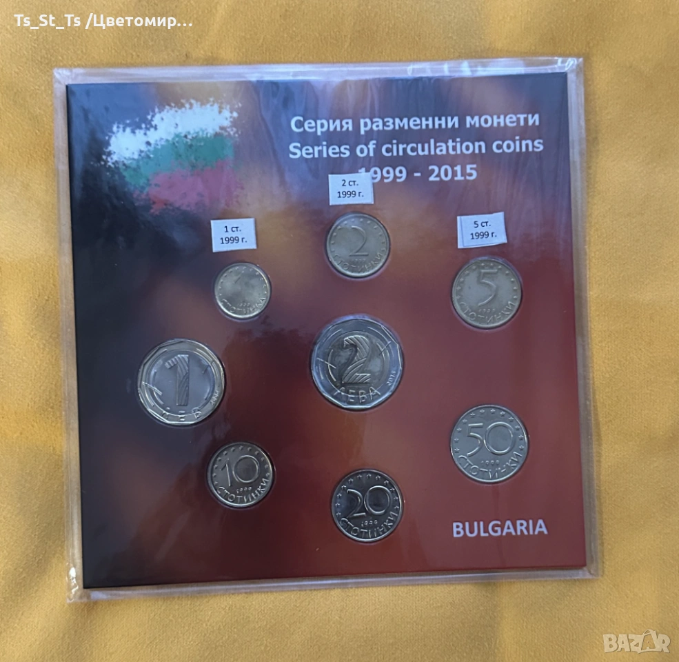Сет нециркулирали (UNC) разменни монети 1, 2, 5, 10, 20, 50 ст. от 1999 г.; 1, 2, 5 ст. 2000 г.; 1 лв. 2002 и 2 лв. 2015 г.