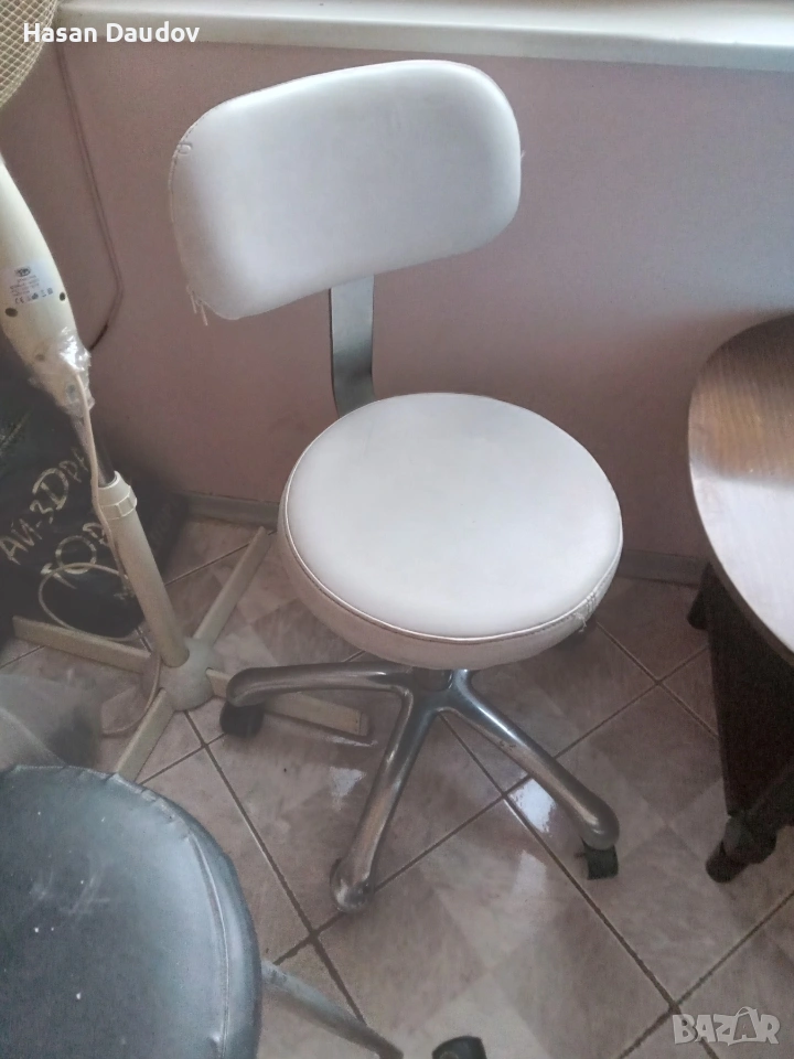 Стола е в добро състояние с нормални следи от употреба, няма скъсано или повредено с работеща хидравлика. Може да се използва както за офис така и като фризьорски и козметичен помощен стол.