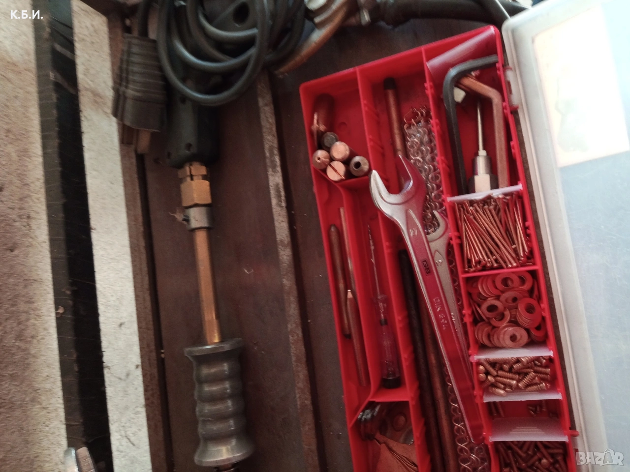 Обратният чук може много лесно и бързо да се сваля и на неговото место да се монтират различни накрайници за заварки на шайби , винтове и много други неща които се виждат на 2-3-4 снимка !!!