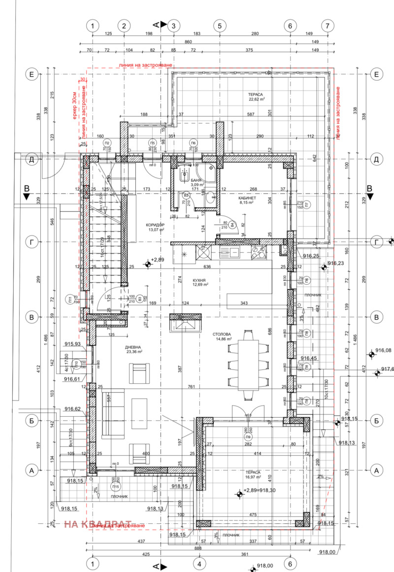 🛋 Партер: Просторна южна дневна с кухня и трапезария, излаз към веранда и двор, входно антре и тоалетна за гости.