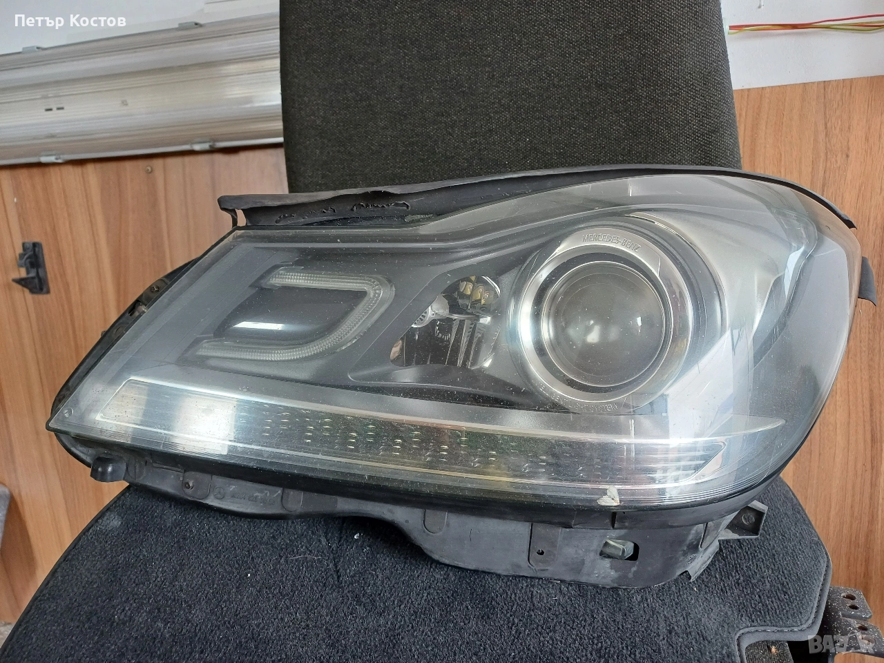 Mercedes C W204 ляв фар 2011 Face здраво оригинално стъкло отзад е спукан корпоса може да се залепи и ползва или за части