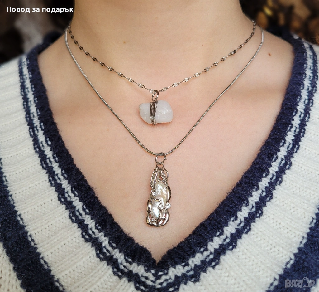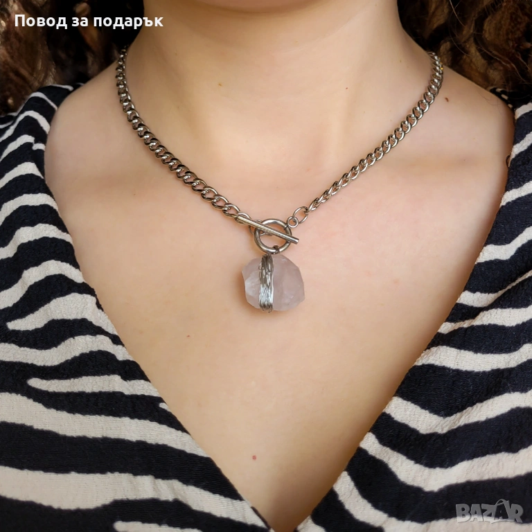 Колие от неръждаема стомана и кварц за 8 март → Обява 53580613