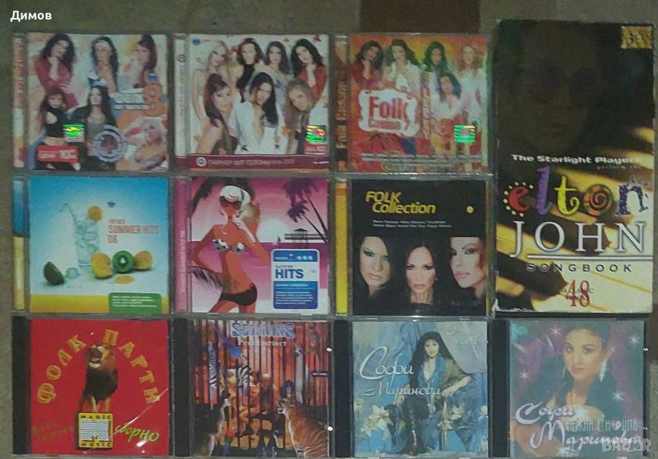 Двата диска на Софи Маринова не са оригинални издания,а някакви версии за радио ефира,които са cd-r и имат драскотини.Тези два диска са подарък към всички останали в обявата.Повечето от всички други дискове са в много-добро състояние, минимални забележки при 2-3 заглавия.Елтън Джон е тройна компилация.