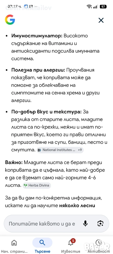 коприва, събрани директно от гората. Те са суровина за приготвяне на храна, напитки или билкови лекове. Копривата е богата на витамини, минерали и антиоксиданти, което я прави полезна за здравето.