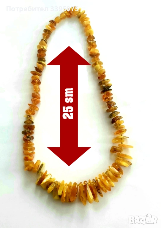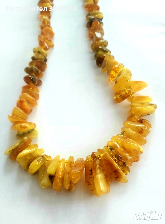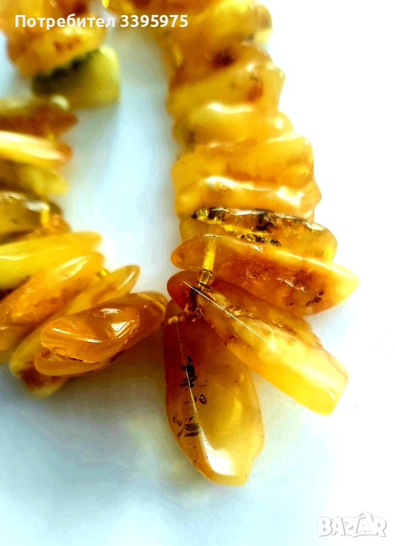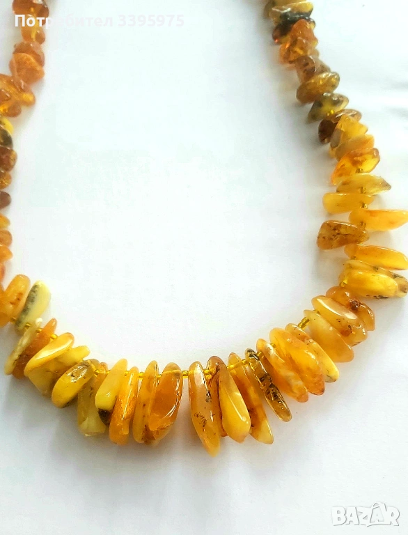 Колиета от естествен масивен кехлибар. Кехлибарена огърлица - 95 броя → Обява 53581255