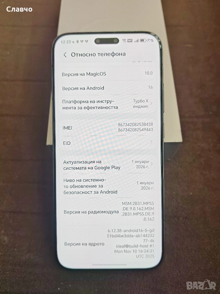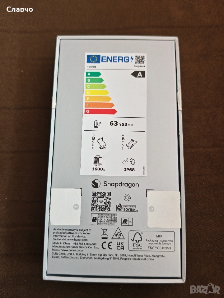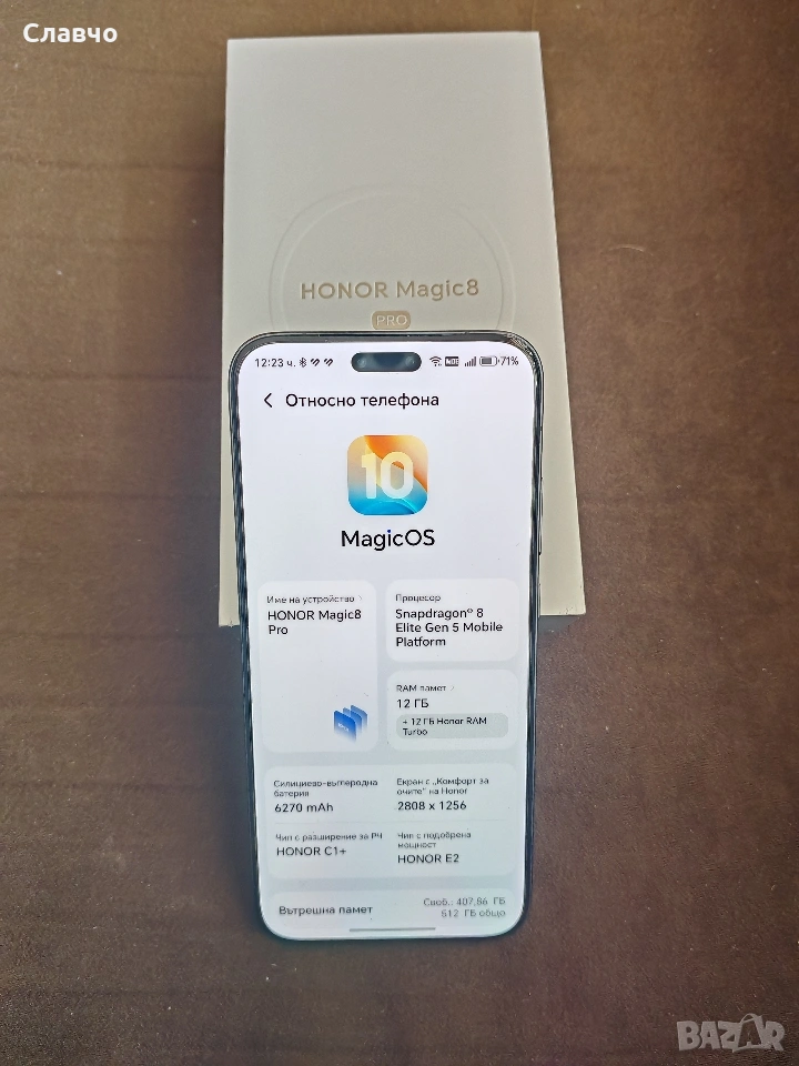 Чисто нов телефон Honor Magic 8 Pro с памет 12GB RAM и 512GB вградена памет. Продуктът е в отлично състояние и готов за употреба. Гаранция от Yetel 3 години. Подарък кейс. Пращам с преглед и тест.