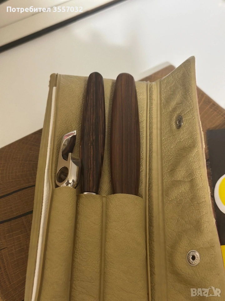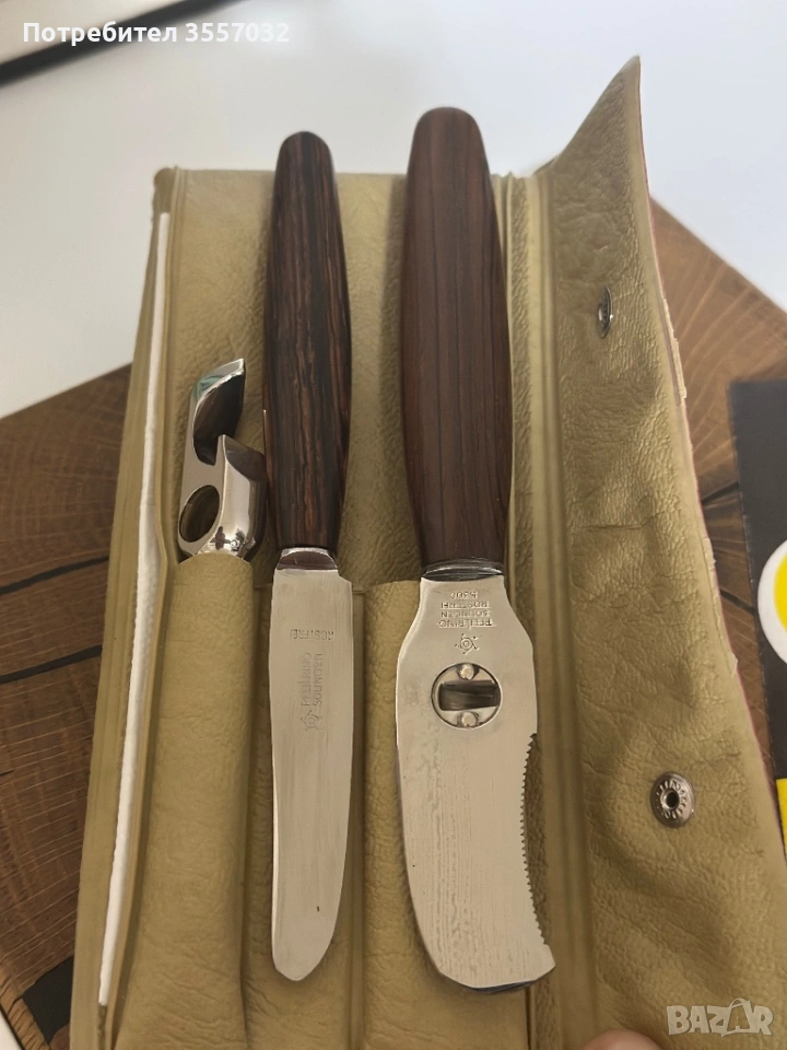 Страхотен комплект за белене на плодове, както има и отварачка и тирбушон. Всичко в калъф от естествена кожа!