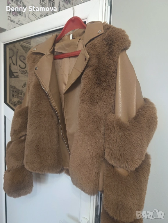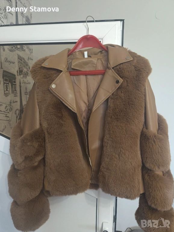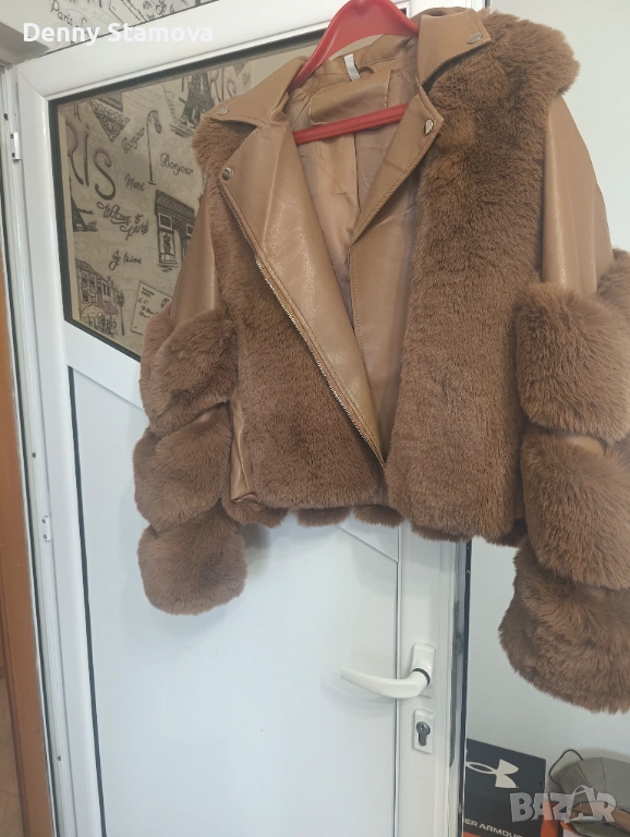 Чисто ново палто с кожа и пух. За съжаление не улучих размера. Гръдна обиколка 100.