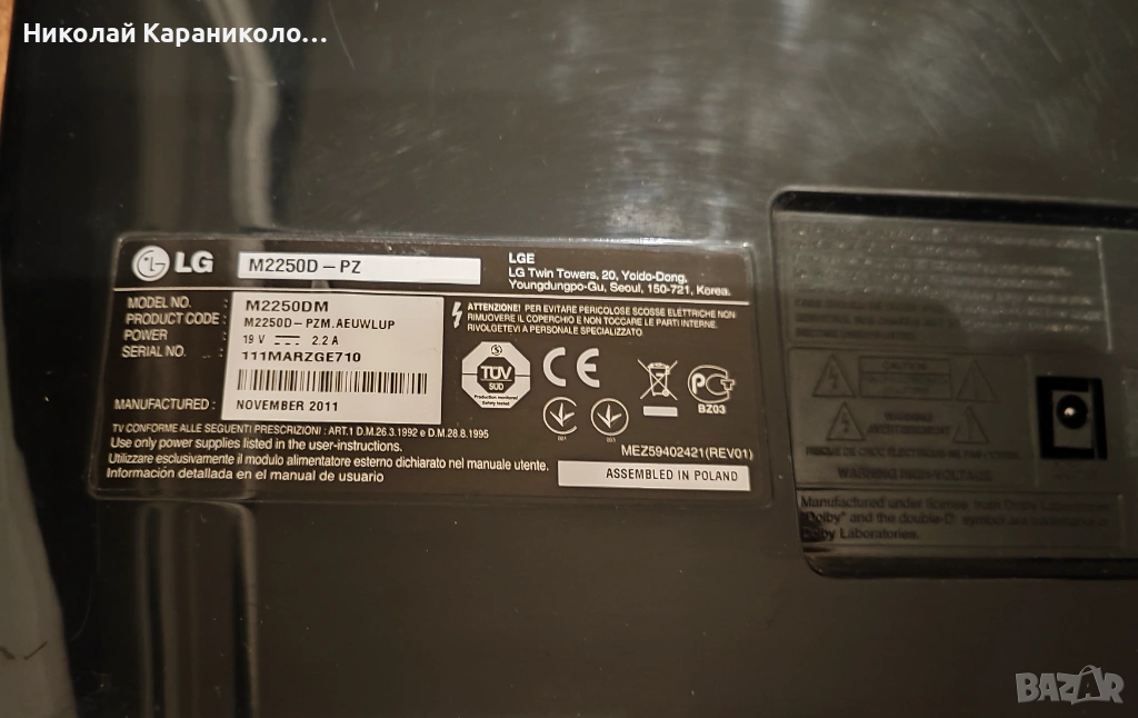 Продавам телевизор LG M2250D-PZ 22 инча на 220 волта