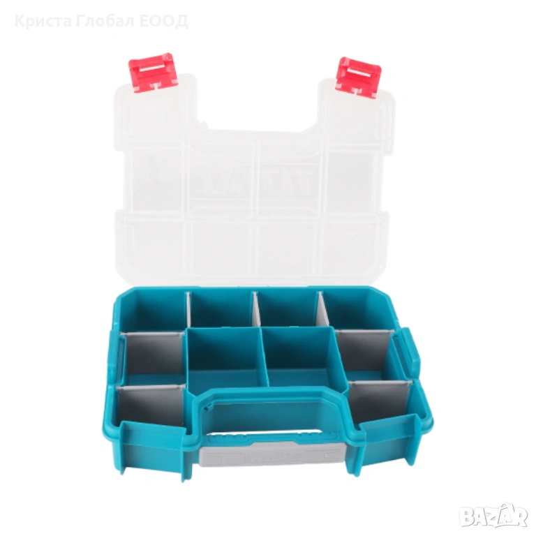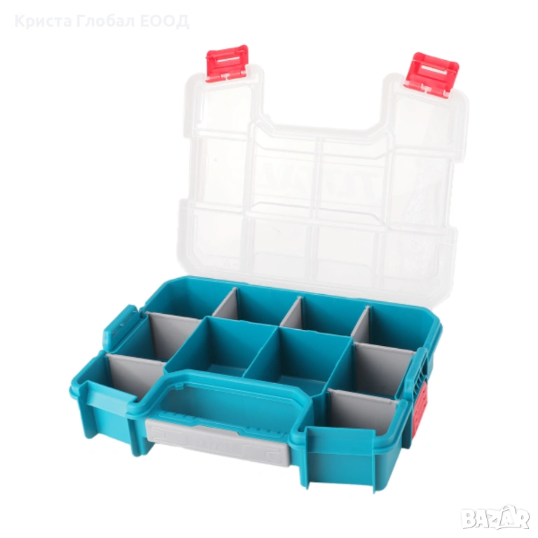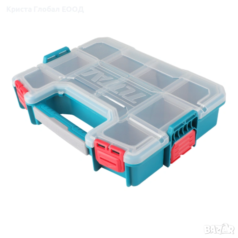 компактна и здрава кутия за инструменти и органайзер от марката TOTAL. Перфектното решение за подредба на малки детайли, които обикновено се губят из големите куфари.