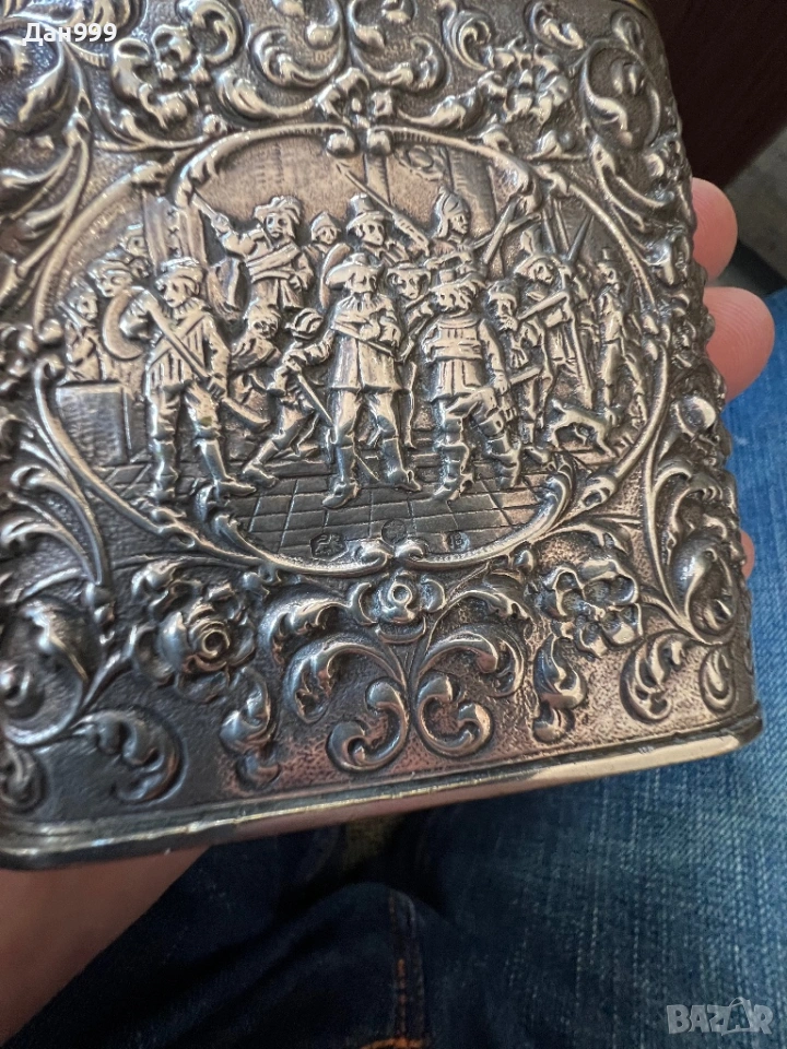 Продавам уникална , колекционерска масивна сребърна запалка 44 грама сребро проба 835 със всички маркировки за идентичност . Едно уникално и много рядко бижу на Karl Weden със релефни картини на Рембранд абсолютна антика в перфектно състояние .Antique German silver petrol lighter, Karl Weden, ca. 1910–1920.