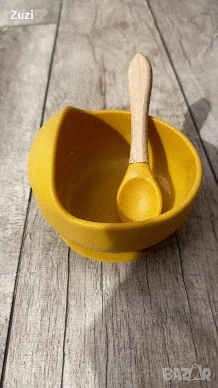 BFA free, нов комплект с дървена лъжичка и вакуумна купа за хранене против разливане