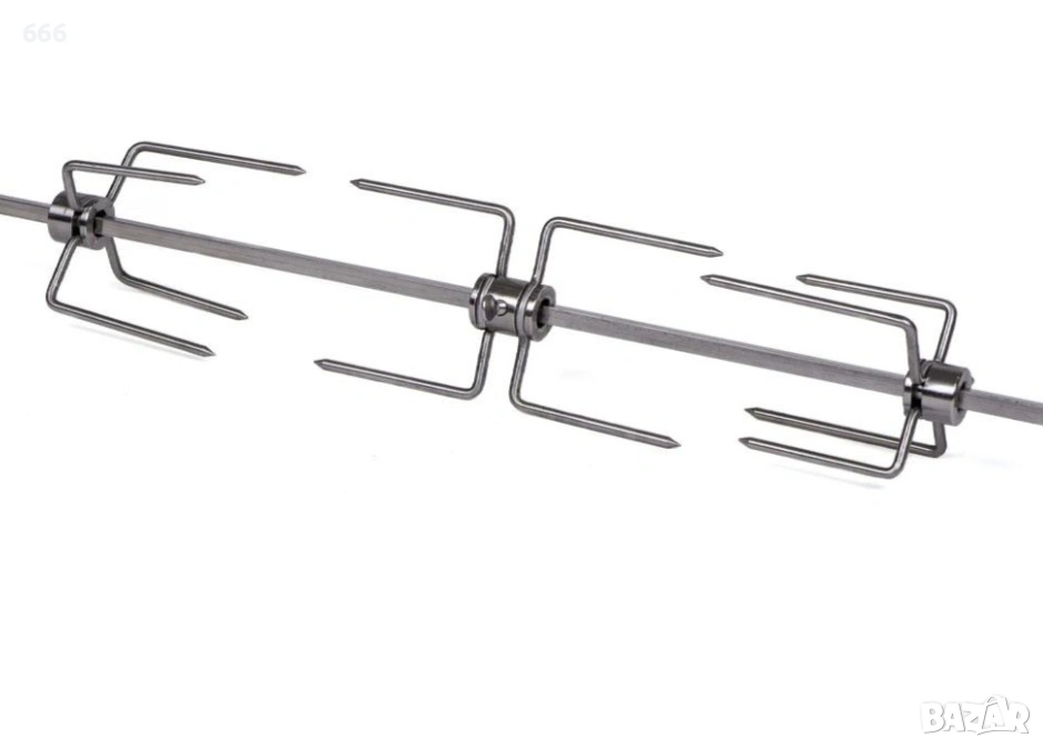 Искате ли да готвите 2 парчета месо едновременно? Тези вилици от неръждаема стомана се поставят в средата на електрическия шиш за барбекю. Така че да можете да поставите едновременно и по няколко парчета месо, пилета, патици или пъдпъдъци. С подходящите прибори за барбекю и аксесоари ще превърнете гриловането в истинско забавление. Изработено е от неръждаема стомана.
