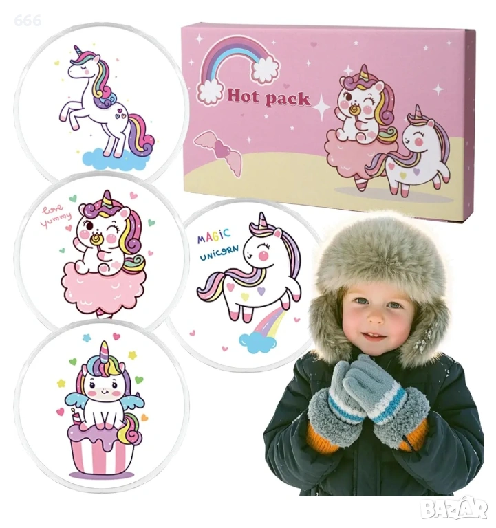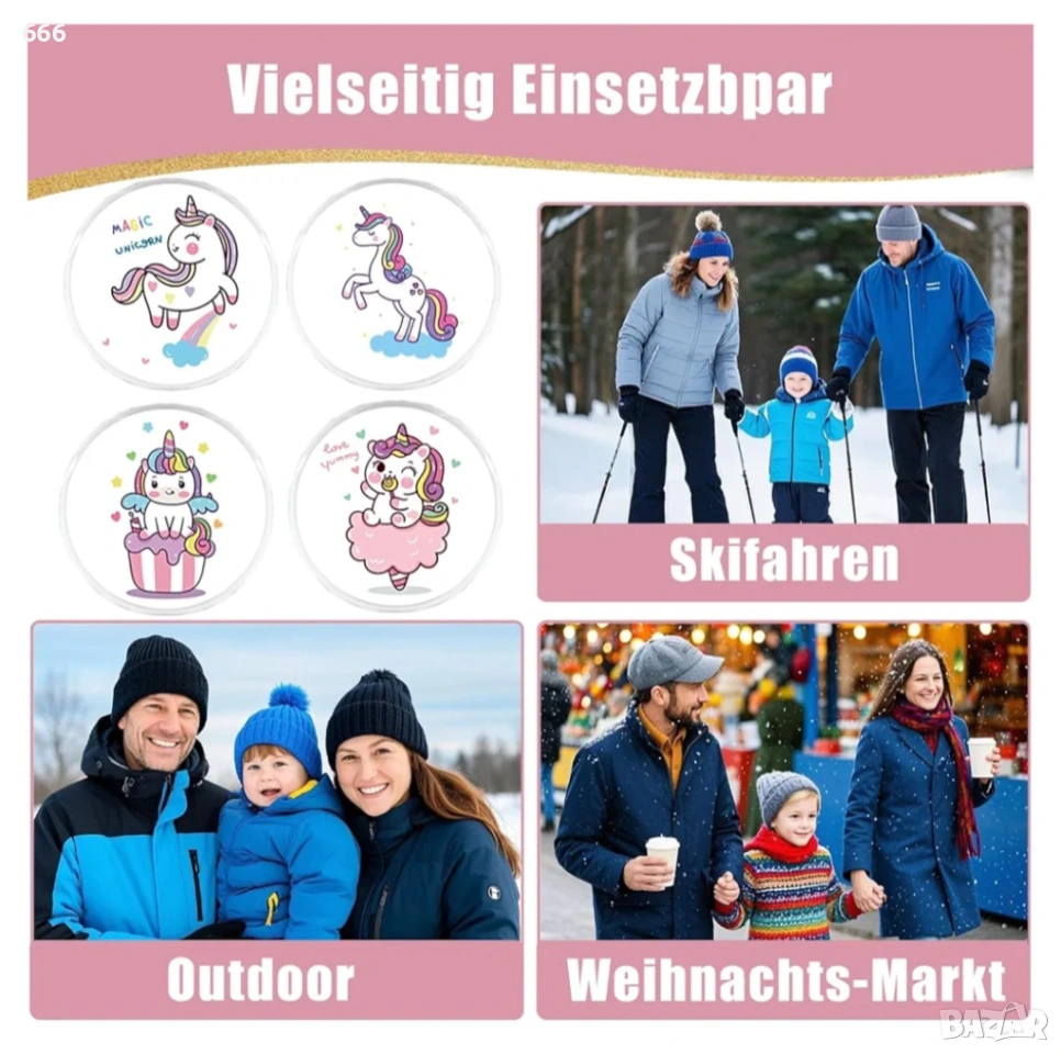 Комплект от 4 многократни коледни грейки за ръце, 9 x 9 см, за зимата и пътуване → Обява 53582129