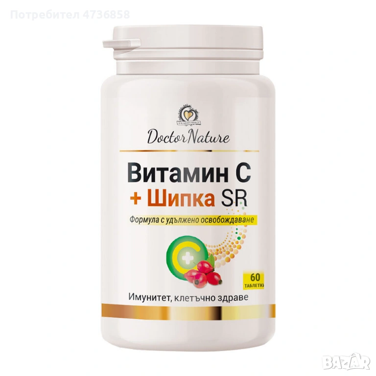 Dr. Nature Витамин C + Шипка с удължено освобождаване, 60 таблетки