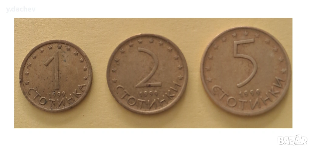 1, 2 и 5 ст от 1999 г. Цената е за трите монети.
