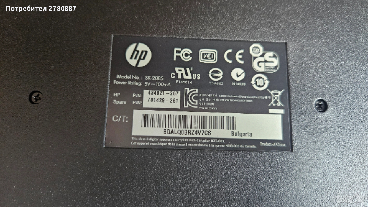 Клавиатура HP SK-2885, Black HU Keyboard, A клас, USB