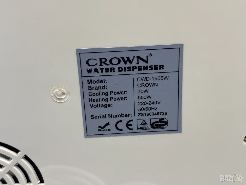 Офис диспенсър за вода Crown CWD-1905W, с електронно охлаждане, бял