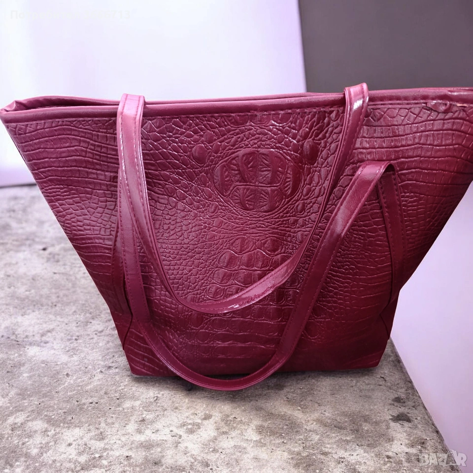 дамска чанта с крокодилите принт-изкуствена кожа,цвят бордо.
