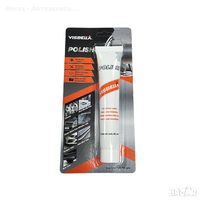 Visbella високоефективна полираща паста е специално разработена за почистване, възстановяване и защита на хромирани и метални повърхности. Формулата ефективно премахва окисляване, петна и фини драскотини, като възвръща огледалния блясък на повърхността.