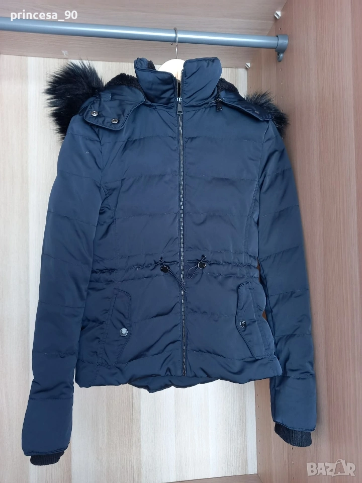 👚 Яке Zara, в горната част е ватирано, качулката се сваля, с ластици се регулира в талията, цветът е като на снимката, има нормални следи от употреба по копчетата, ще прекача снимки