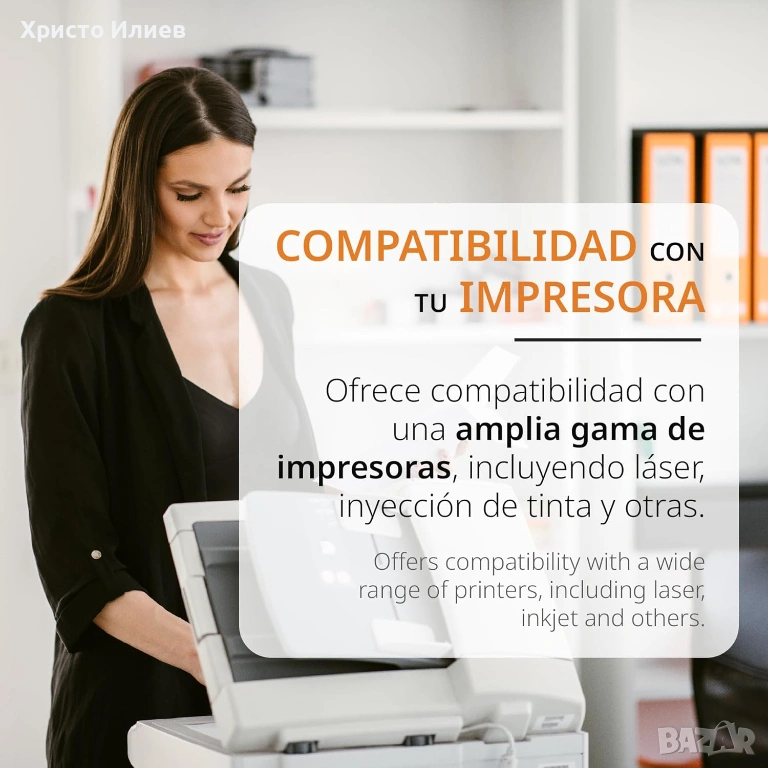 - Съвместимост с принтери Нашите самозалепващи етикети са съвместими с всеки лазерен принтер или с различните модели мастиленоструйни принтери, които поддържат формат A4.