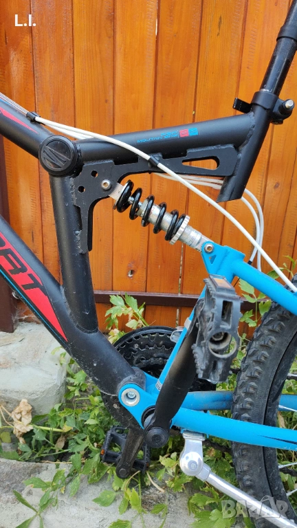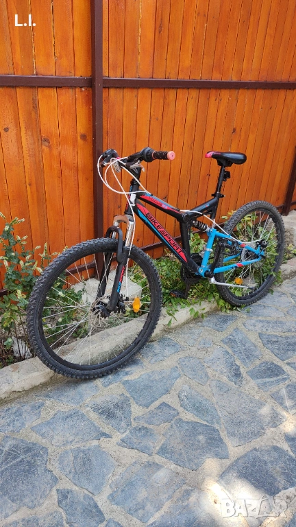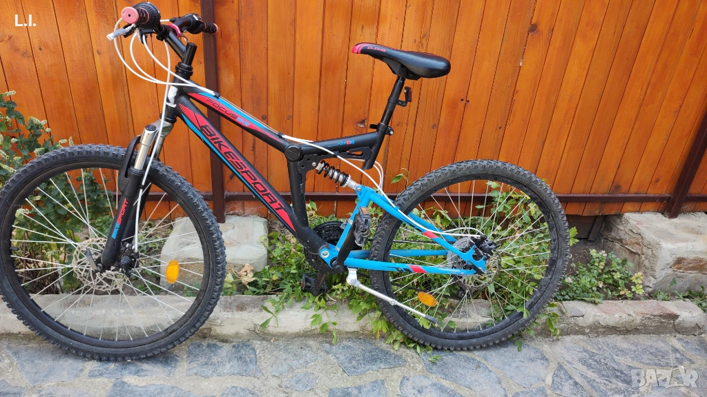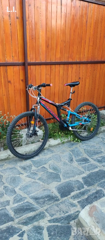 Запазена велосипед от . Две дискови спирачки, амортисьори на седалката и кормилото, стомана рамка.