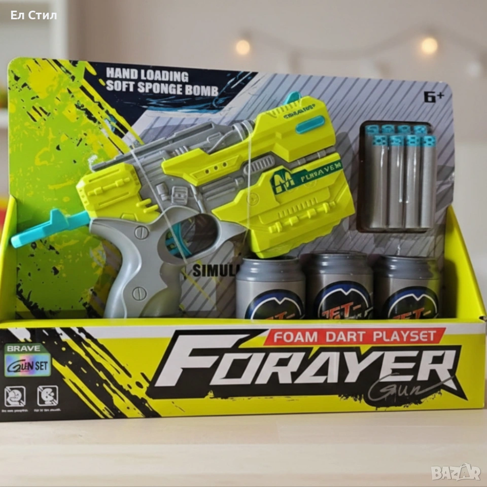Допълнителни елементи: 8 меки патрона, 3 мишени тип кенчета;