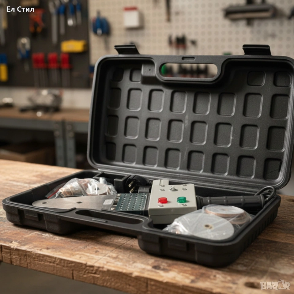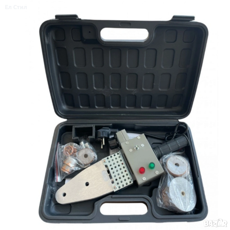 Комплект: лепачка 900W, 6 броя нагревателни глави (Ф20, Ф25, Ф32, Ф40, Ф50, Ф63), шестограм, здрав куфар;