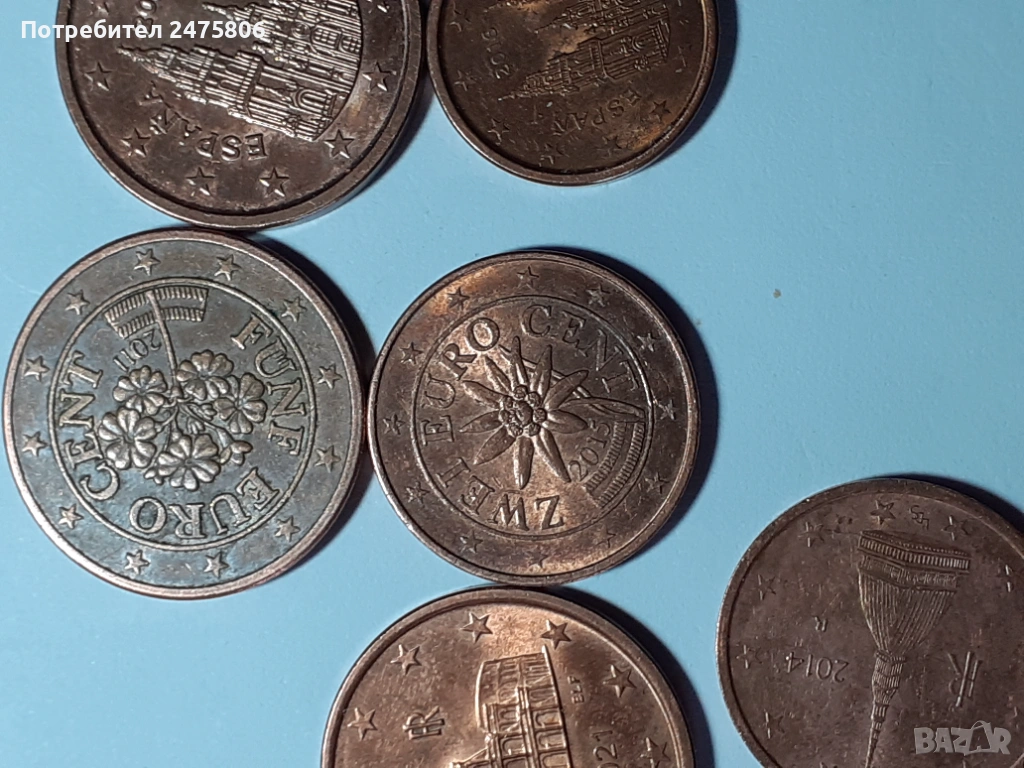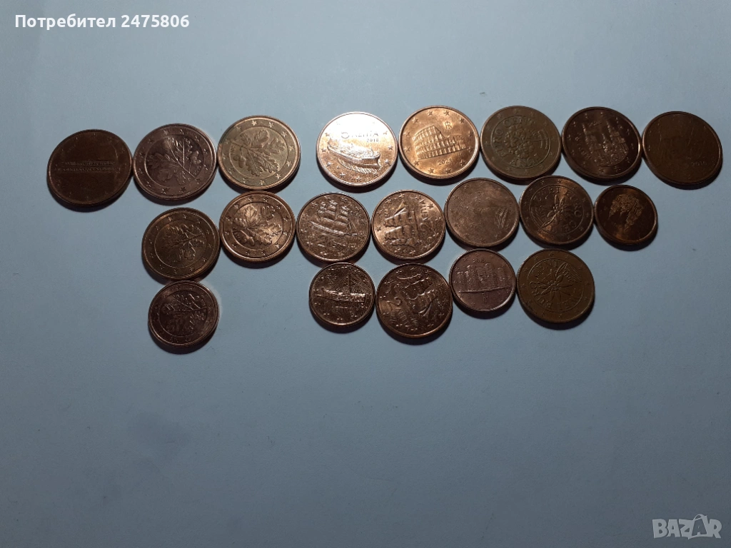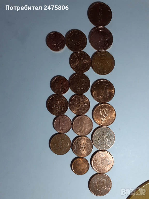 Колекционерски монети Лот от 20 броя - 1-2-5 евро цента- Различни години - различни държави