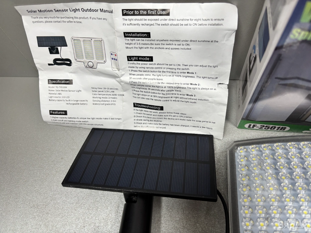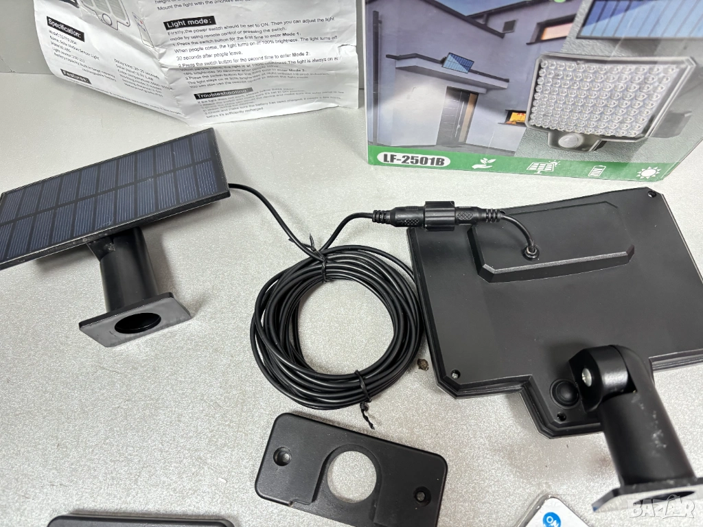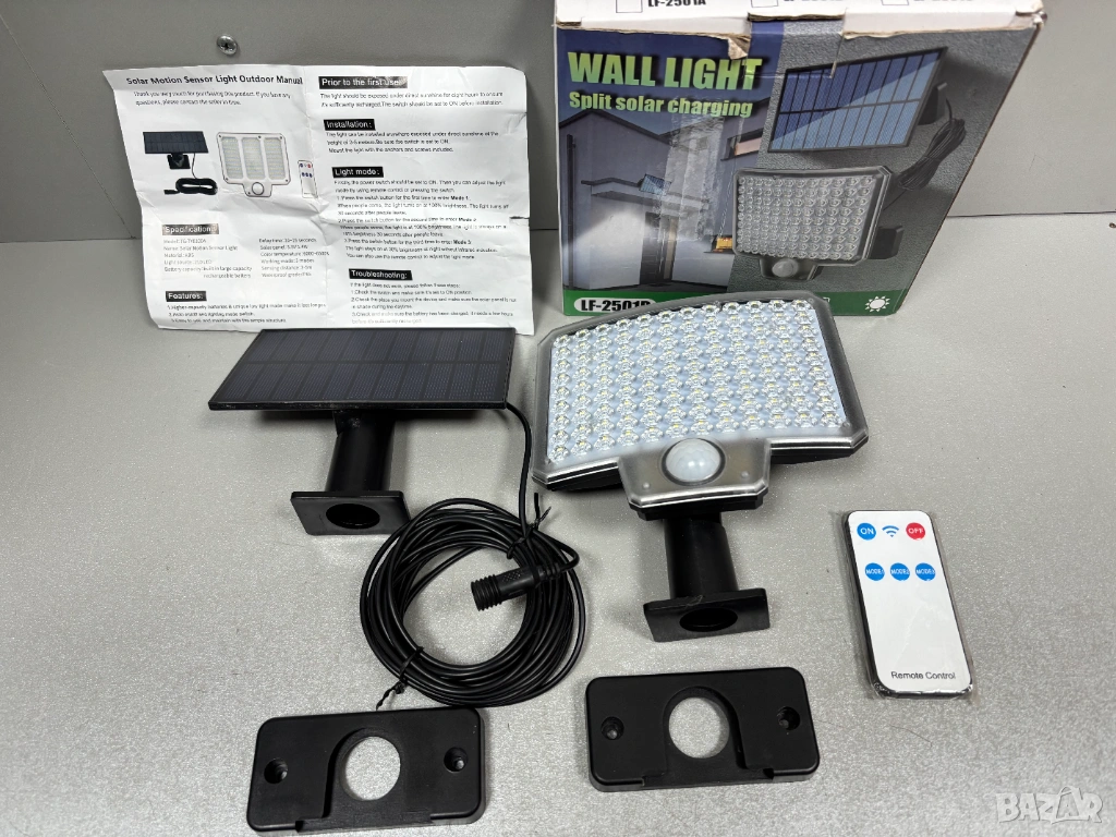 Външна соларна стенна лампа със сензор за движение и дистанционно управление (модел LF-2501B)