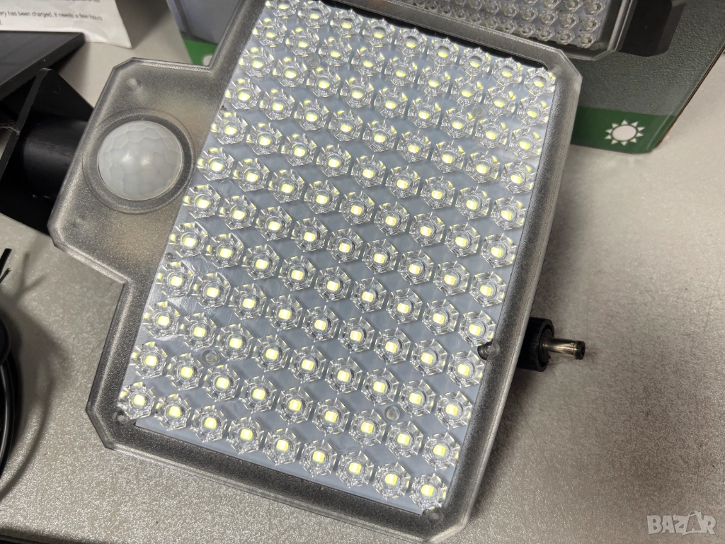 Висококачествено осветление със 106 LED соларни светлини, 120° ъгъл на засичане на осветяване, който покрива множество осветени зони и осигурява супер ярко осветление за големи площи.