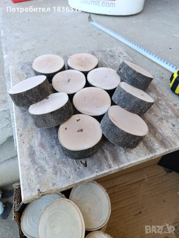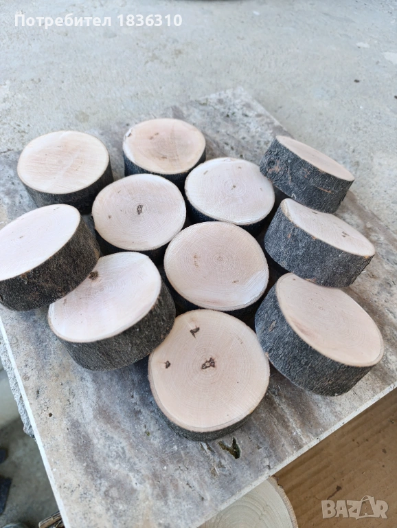 Дървени шайби от габър . Диаметър 7-8 см. Дебели 3 см. Сухи шлайфани и много гладки. Може да се направят 🕯️ Ник.