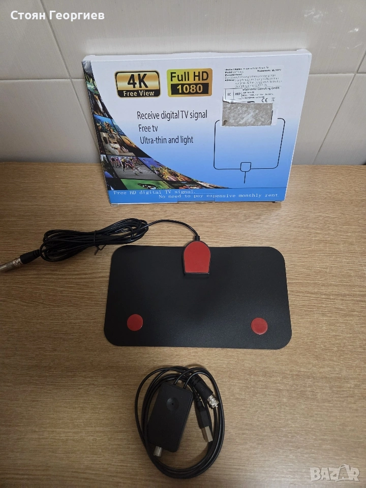 Ултра тънка и лека дигитална антена, може да се постави както хоризонтално така и вертикално. Чистота на сигнал е Full HD 1080P. Лесна за инсталиране, върви с упътване излъчва всички безплатни канали. Състояние ново, продукта не е ползван.