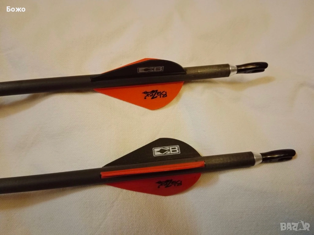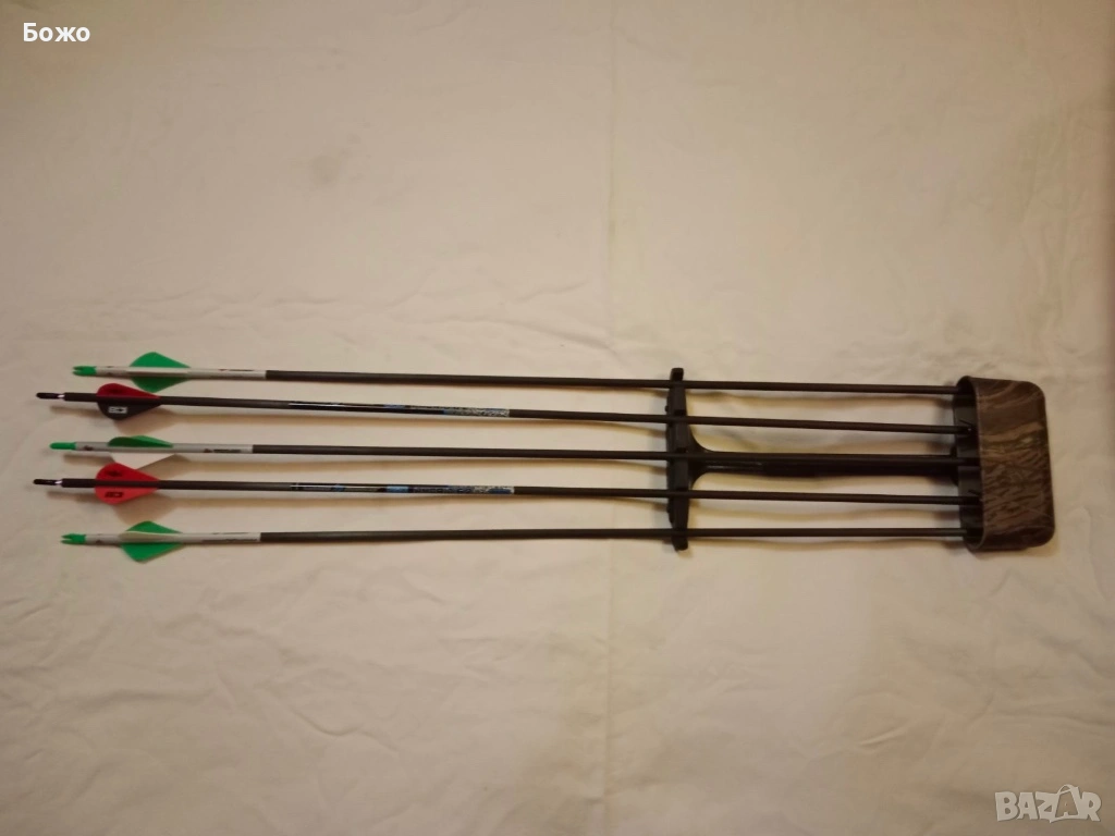 На купувача ще подаря пет броя чисто нови качествени и маркови карбонови стрели със спайн 350, две от които са оборудвани с ловни върхове, а другите - с тренировъчни.