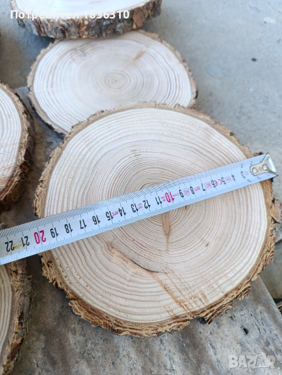 Дървени шайби от бор диаметър 18-20 см. Дебели 1.5 - 2 см. Сухи шлайфани и гладки за повече информация 0887908522.