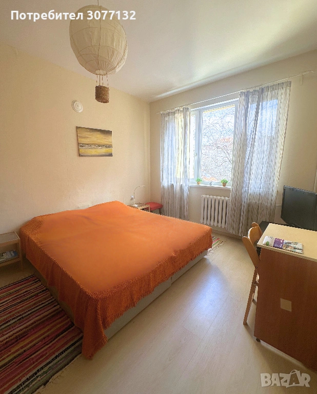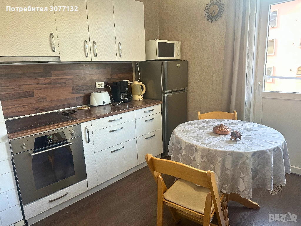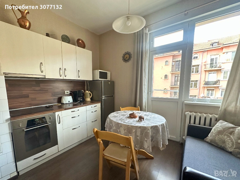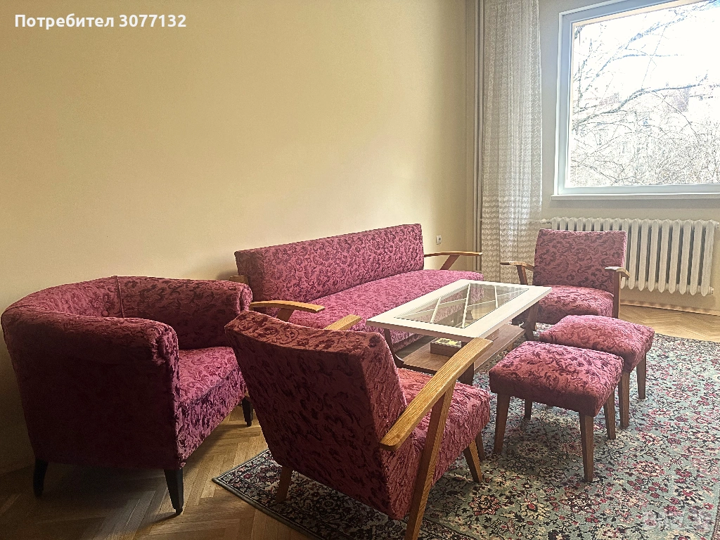 Дава се под наем от собственик 2-стаен апартамент в идеалния център на София на самите пет кьошета. Жилището е санирано, много топло и с ниски сметки за отопление. Състои се от антре, просторна дневна (състояща се от две понещения), кухня, уютна спалня, баня с тоалетна, мокро помещение и два балкона. Прекрасна гледка към голям вътрешен двор с достъп за обитателите на сградата. Апартаментът е напълно оборудван с всичко необходимо за едно домакинство: печка, микровълнова печка, хладилник, пералня и телевизор. Входа на сградата е с видео наблюдение като достъпа е с чип. Налично общо помещение за бебешки колички или колела на партерен етаж.