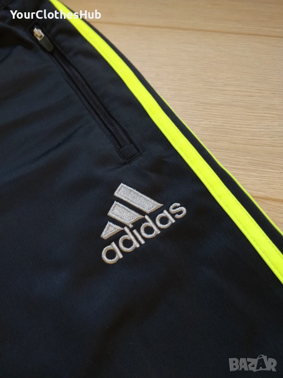 Мъжко спортно долнище Adidas AJAX в размер M. Оригинален артикул. Ципове на крачолите. Ластик и вътрешни връзки в горната част. Цвят: тъмносин/неонов.