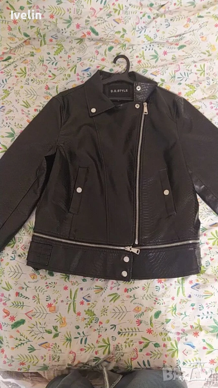 Дамско черно кожено яке Style като ново, размер L → Обява 53584112
