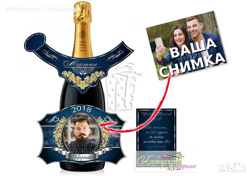 Етикет за шампанско със снимка - Класическо синьо → Обява 53584134
