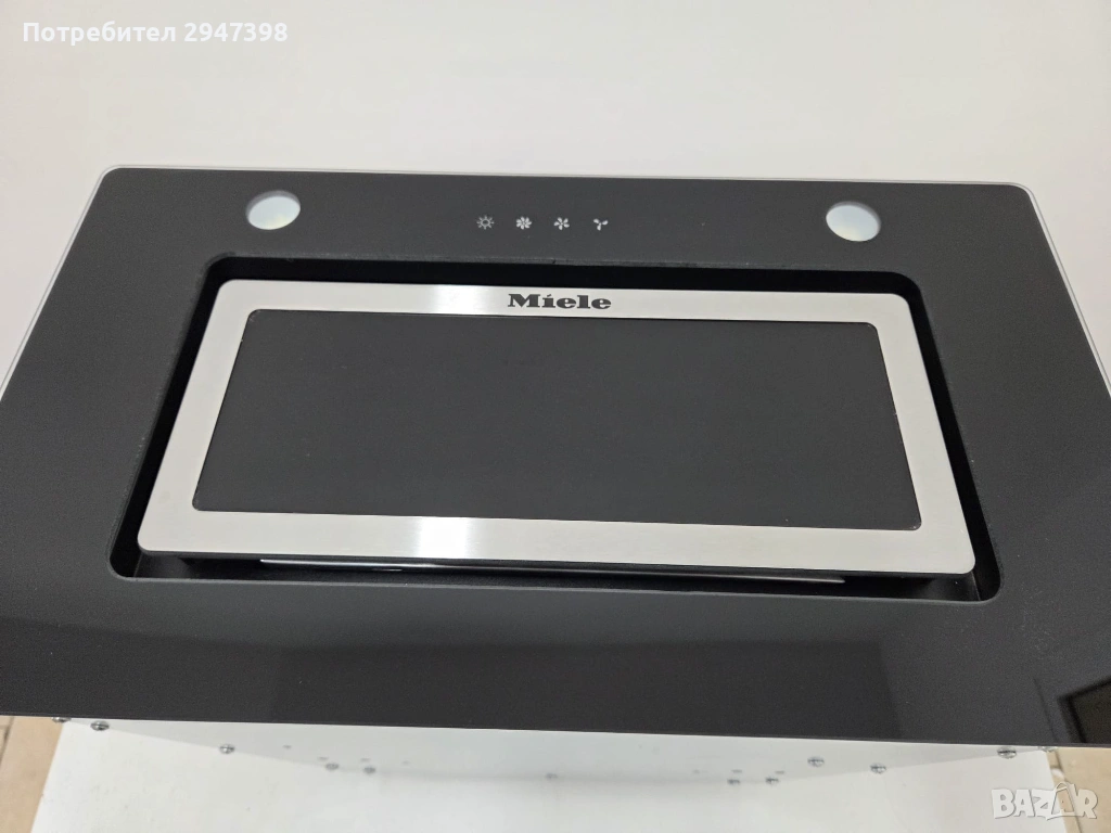 Аспиратор Миеле за пълно вграждане, дизайн-черно закалено стъкло и инокс, сензорен дисплей за управление. 3 степени на засмукване, лед осветление, дебит- 800куб.м/ на час, миещ се филтър.