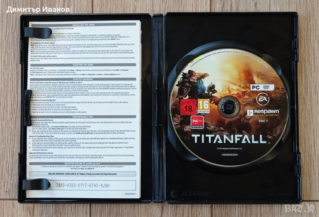 Играта е нова, макар и с разпечатано фолио. В кутийката са налични всички елементи от изданието: инструкции за инсталация, стартиране, performance tips, рекламни флаери на ПУЛСАР. Дисковете, както е видно от снимките, нямат и следа от употреба.