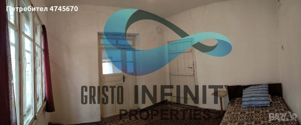 В имота има две постройки отразени в скица. Основната масивна къща е от 75кв.м. на висок първи етаж, състоящ се от 4 стаи с два входа.Под цялата къща има разположени мазета/избени помещения.