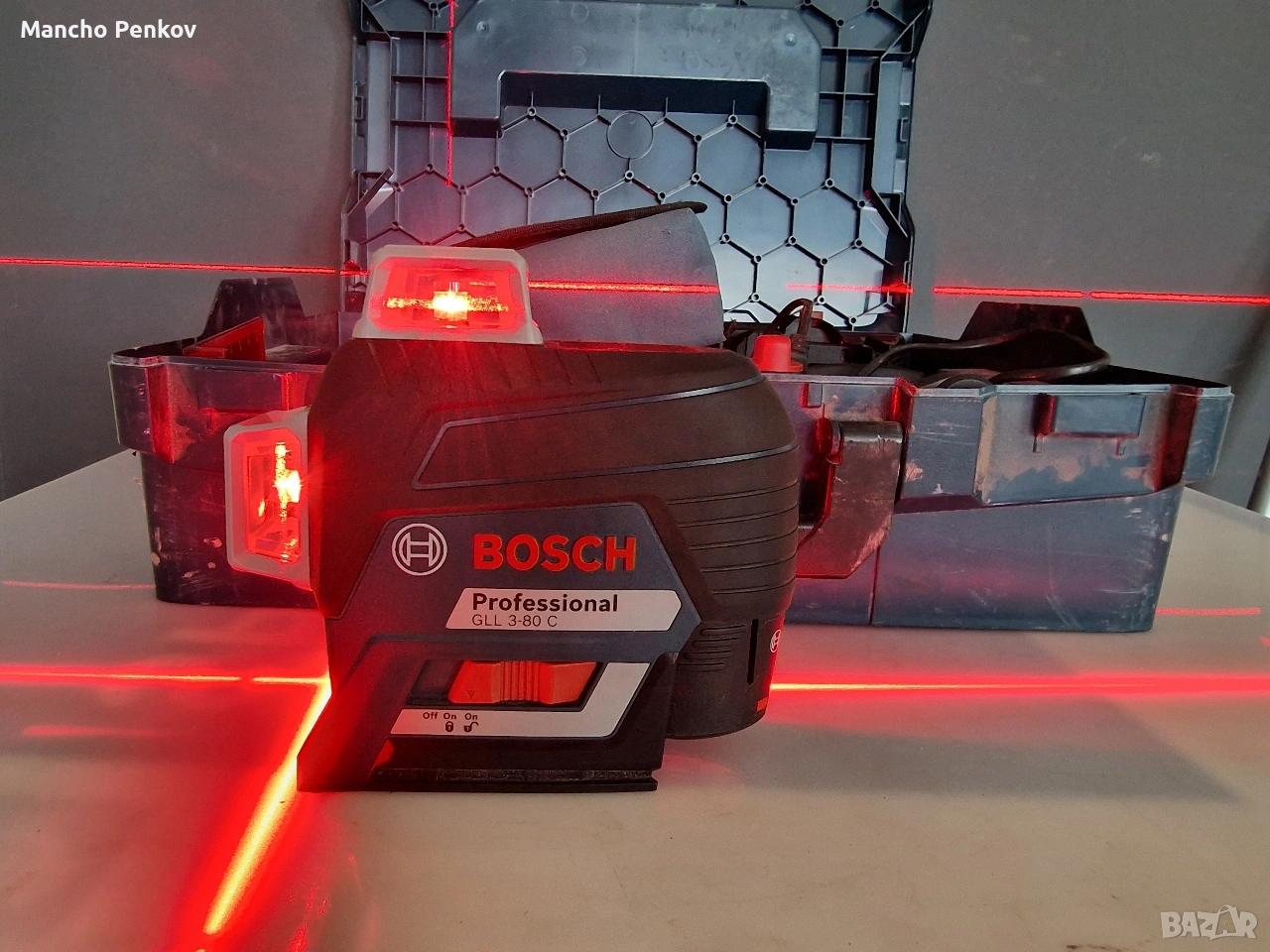 Bosch GLL 3-80 G 12V лазерен нивелир Червен лъч пълен комплект 12 волта чудесно състояние.