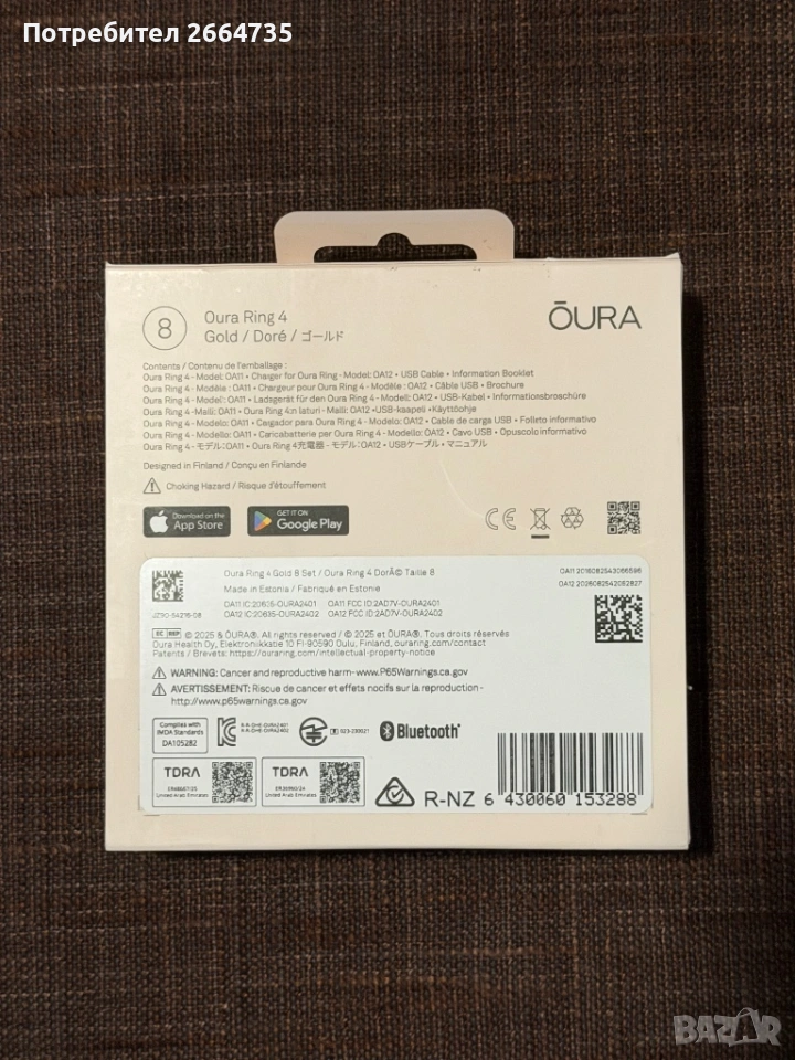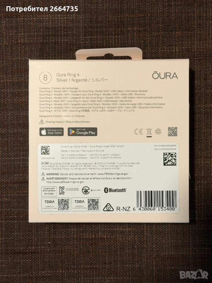 Чисто нови пръстени Oura Smart 4, снимка 1 - Пръстени - 53584486 Чисто нови пръстени Oura Smart 4, снимка 2 - Пръстени - 53584486 Чисто нови пръстени Oura Smart 4, снимка 3 - Пръстени - 53584486 1/3