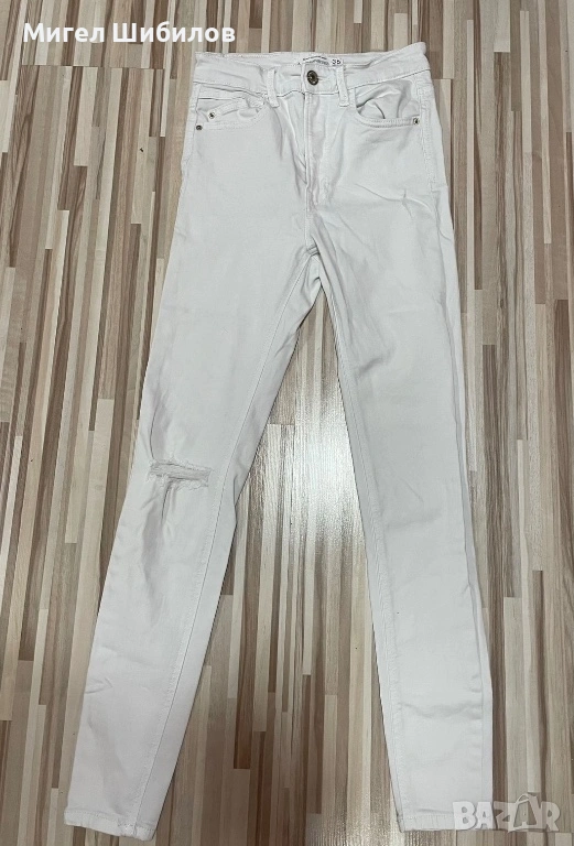 Продавам дамски бели дънки на Stradivarius размер 36 (отговарят на S).