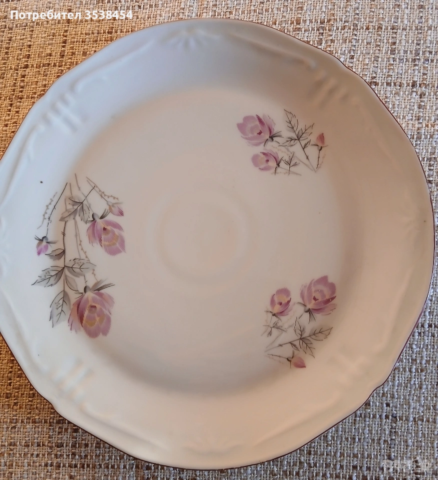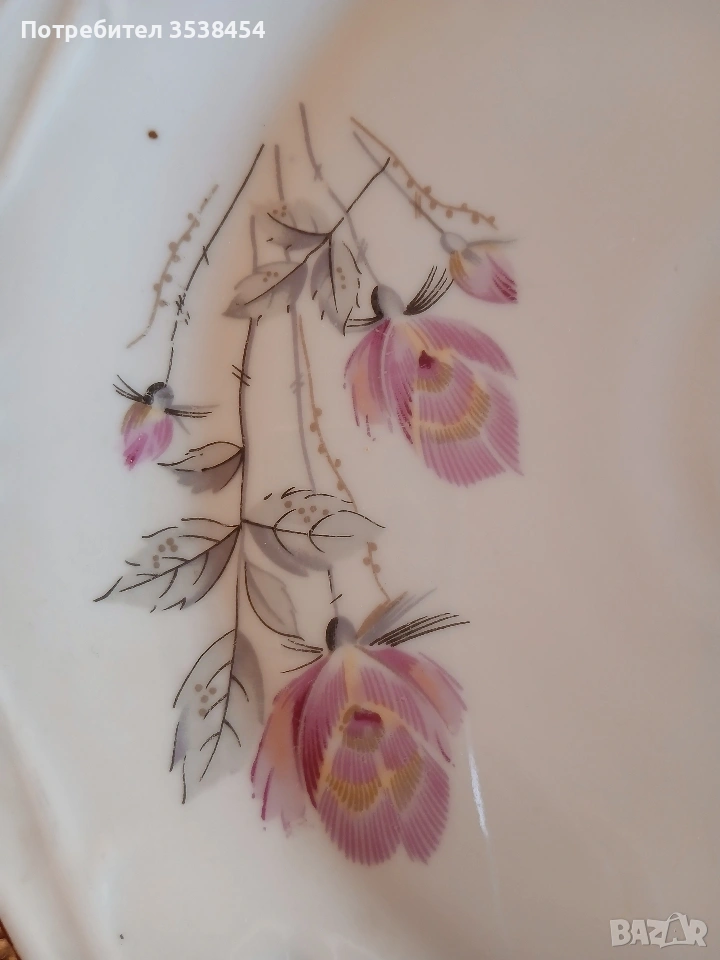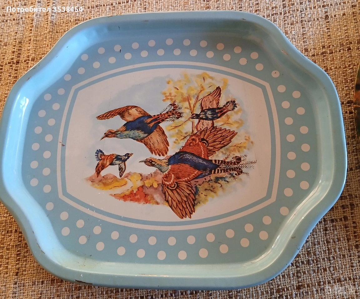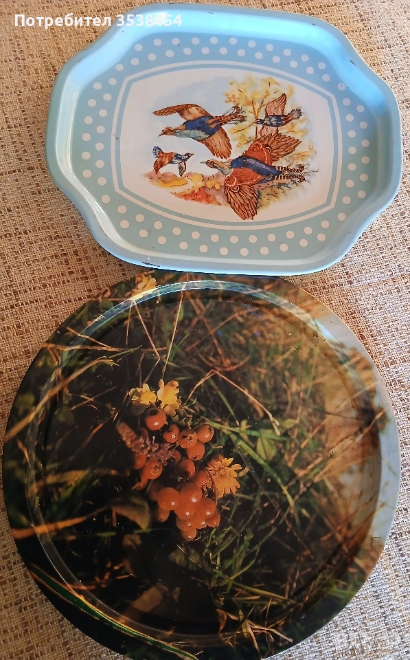 ПРОИЗВОДСТВО МИНАЛИЯ ВЕК, МЕТАЛНИ - синята в Полша: 27/32,5 см, кръглата в СССР: диаметър 32,5 см. Леки забележки от съхранение. ЦЕНА ЗА БРОЙ 4 €. Порцеланът е старо българско прозводство с диаметър 30 см. 9€.